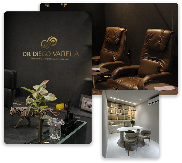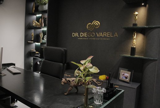 Os pacientes do Dr. Diego Varela têm à sua disposição uma variedade de salas especializadas, incluindo a sala de aplicação de Terapias Hormonais, onde tratamentos específicos são administrados com cuidado; a Sala de Avaliação, que proporciona um espaço adequado para avaliações detalhadas; a Sala de Nutricionista, destinada a consultas nutricionais personalizadas; e, claro, a Sala do Dr. Diego Varela, onde o acompanhamento médico é realizado com atenção e dedicação.